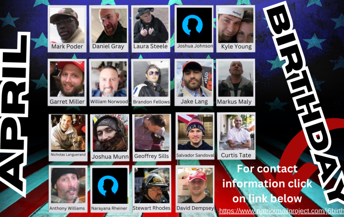 Everyone, it's important to write to the J6ers. They love receiving mail. Please send them a note, a card [...]