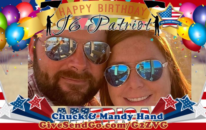 HAPPY BIRTHDAY CHUCK! Enjoy your day, Patriot! Chuck Hand c/o Patriot Mail Project PO Box 173 King, NC 27021 [...]